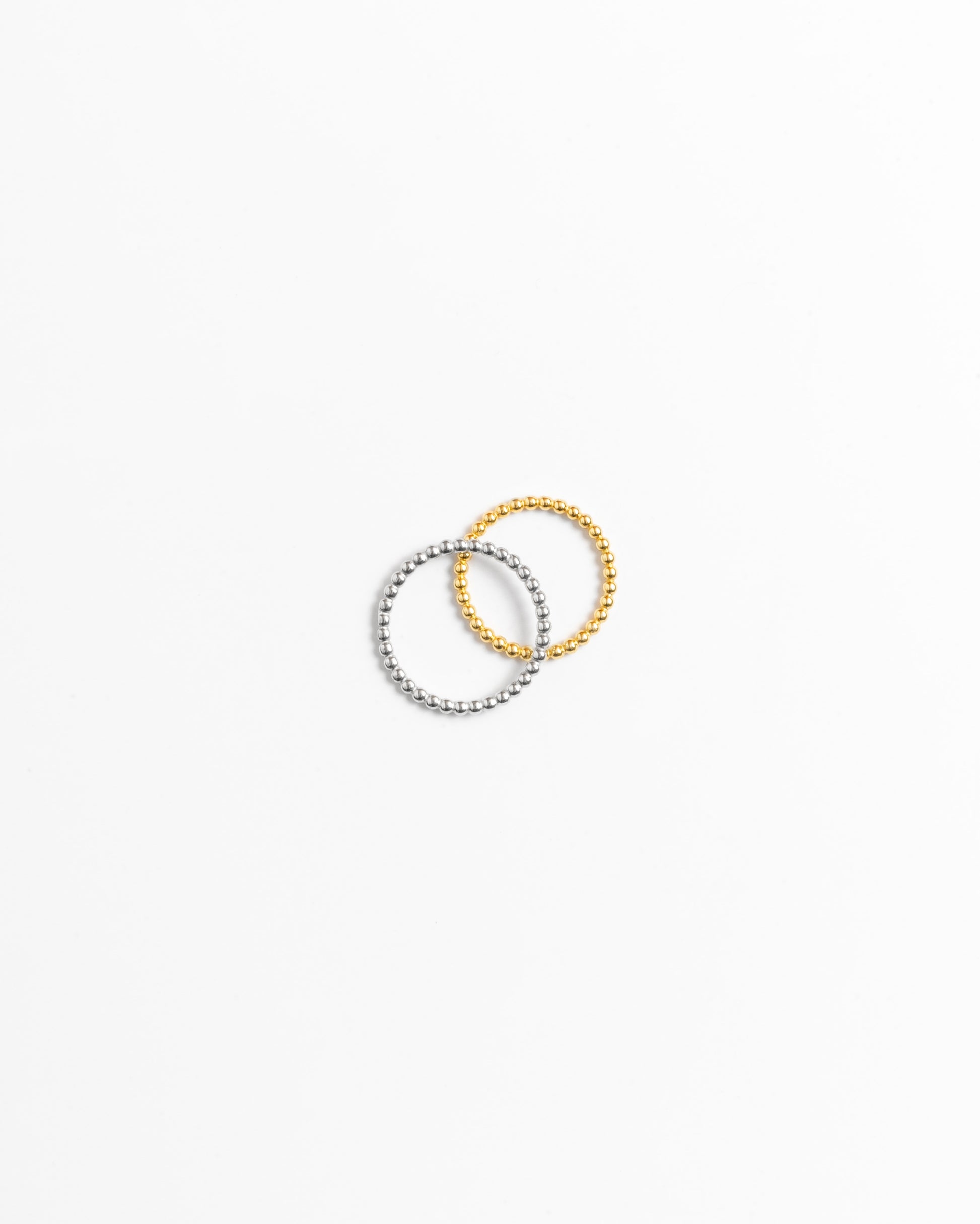 Anillo fino con pequeñas bolitas en todo el contorno.