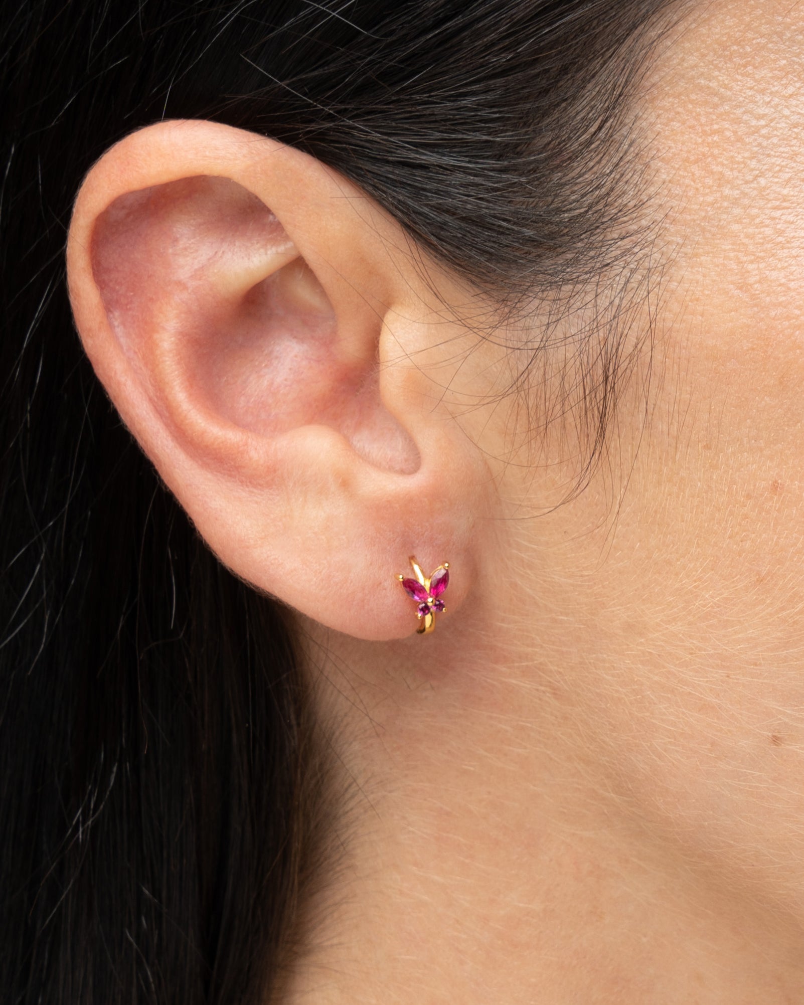 Aros de plata con cuatro circonitas en forma de mariposa.