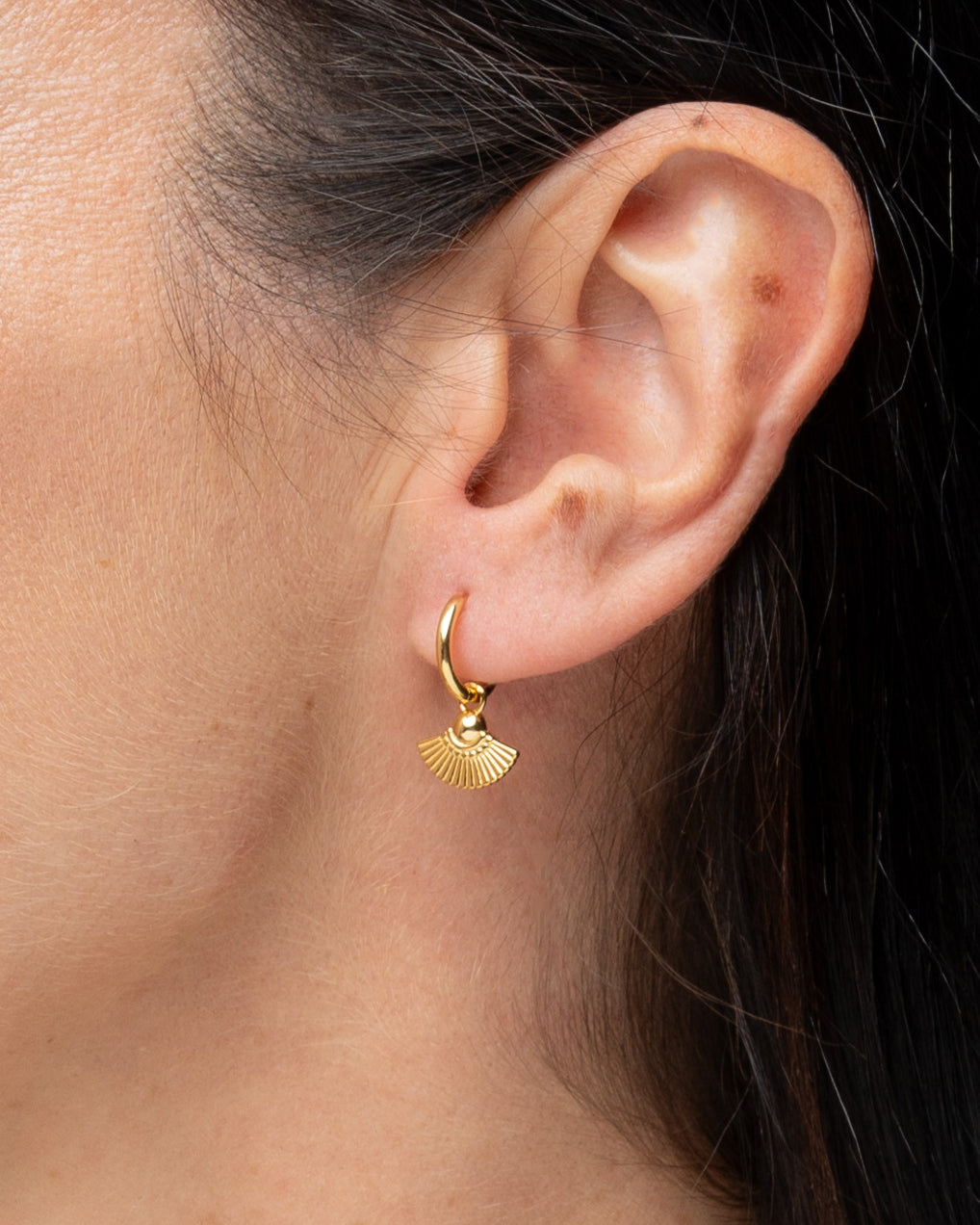 Aros de plata con colgante de abanico extraíble. Muy versátil para poder llevarlo de la forma que más te guste.