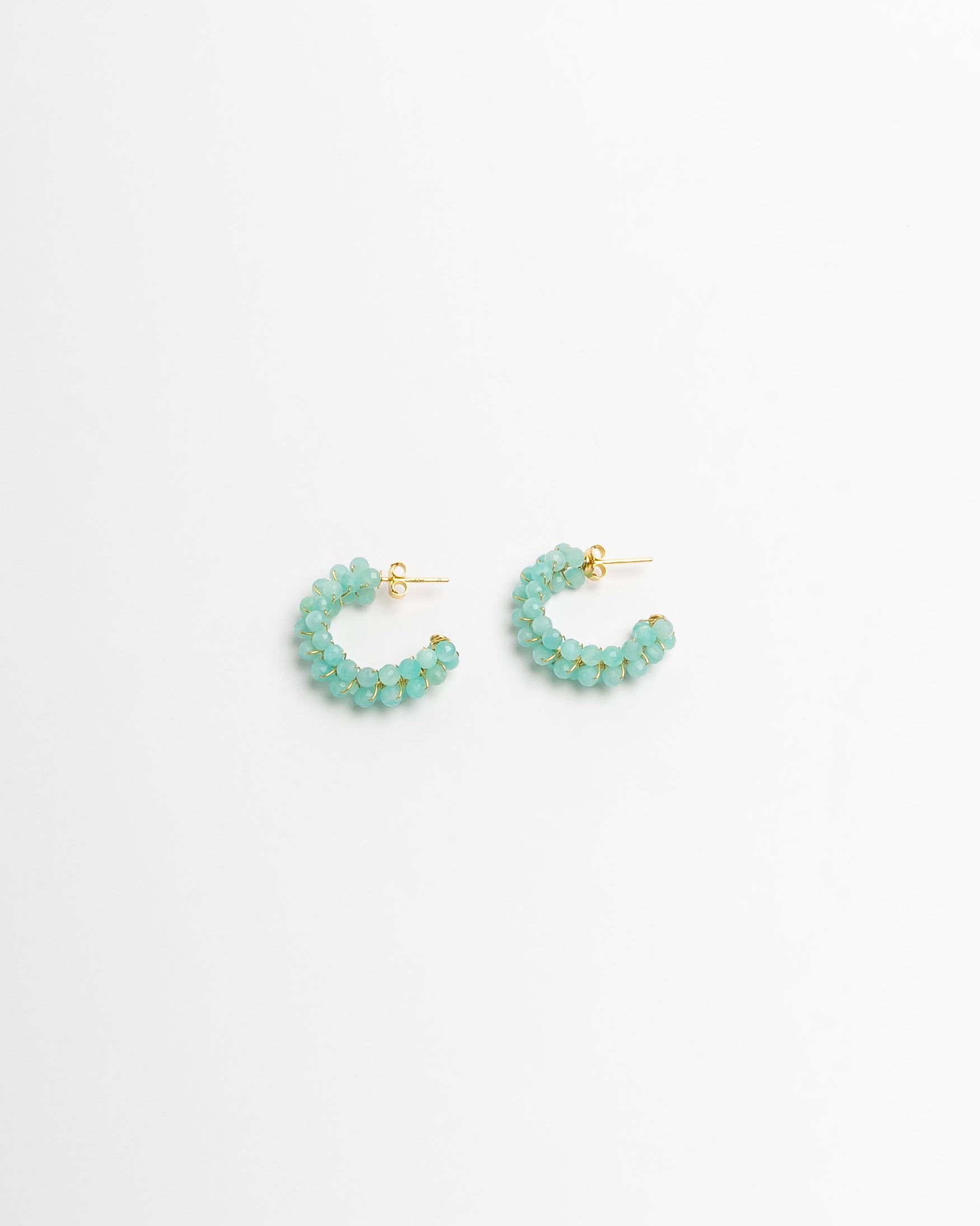 Aros de plata chapada en oro con pequeños minerales que aportan luz y color.
