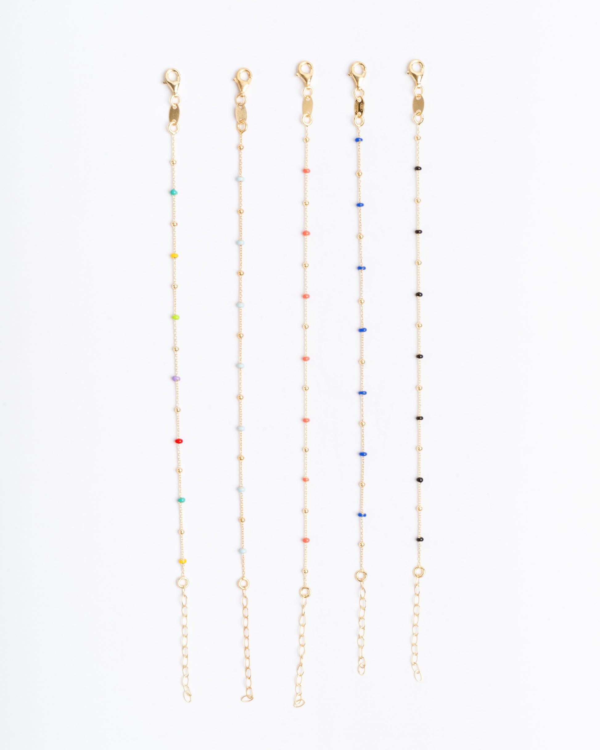 Pulsera de plata 925 con bolitas lisas doradas y esmaltadas en color.